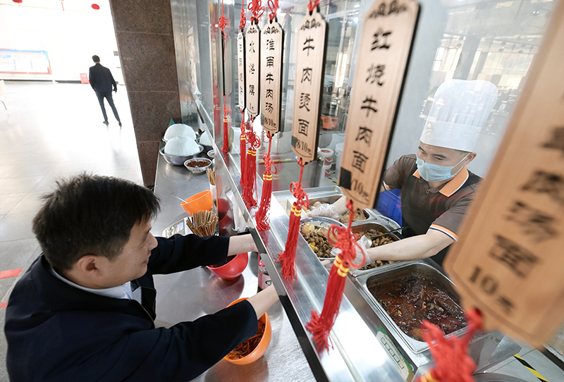 孫疃礦引進專業化餐飲公司,食堂管理規范、物美價廉,提高了職工的就餐體驗。(陳更 攝)