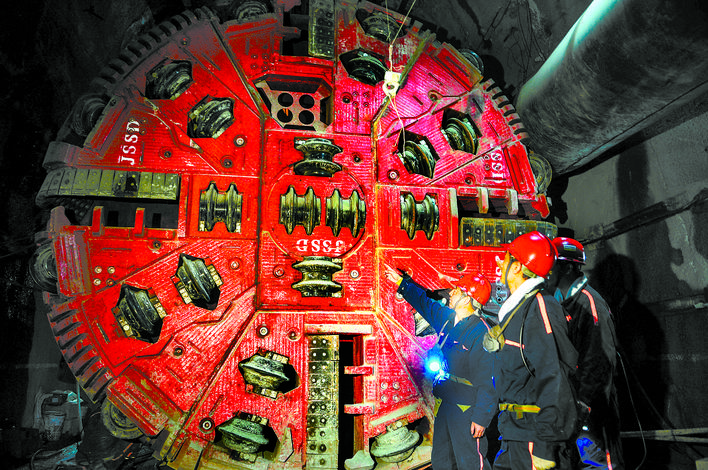 開展“產(chǎn)學(xué)研”一體化合作,不斷創(chuàng)新改進(jìn)盾構(gòu)設(shè)備,推進(jìn)盾構(gòu)機(jī)全系統(tǒng)“本土化”。“淮盾2號(hào)”較“淮盾1號(hào)”,提出了11項(xiàng)適應(yīng)性改造方案;“淮盾3號(hào)”較“淮盾1、2號(hào)”,采用了7項(xiàng)國(guó)內(nèi)首創(chuàng)技術(shù);“淮盾4號(hào)、6號(hào)”首次實(shí)現(xiàn)了刀盤變徑,可同時(shí)滿足直徑5530毫米和4880毫米兩個(gè)斷面施工;“淮盾5號(hào)、7號(hào)”優(yōu)化了液壓錨桿鉆機(jī)布置;“淮盾8號(hào)、9號(hào)”在前7臺(tái)盾構(gòu)機(jī)機(jī)型基礎(chǔ)上,進(jìn)行大坡度下山施工易糊刀盤、指型護(hù)盾較長(zhǎng)造成空頂面積大等6項(xiàng)設(shè)備改進(jìn)與升級(jí)。截至目前,淮北礦業(yè)集團(tuán)已提出61項(xiàng)盾構(gòu)機(jī)適應(yīng)性改造方案,讓“大國(guó)重器”真正“入鄉(xiāng)隨俗”。